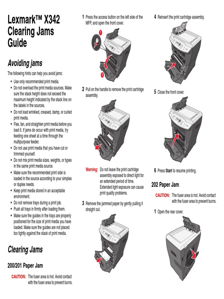 Lexmark™ X342 Clearing Jams Guide PDF Image Scanner
